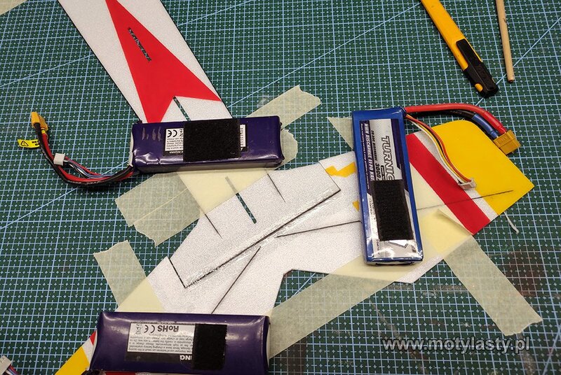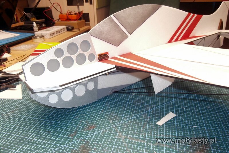 tutaj postawiłem na hybrydę. Depron stanowi poszycie i elementy lżejsze, aby zredukować wagę całkowitą. Pichler wykorzystany na przód modelu oraz lotki. Materiał ten wyróżnia się jednorodną strukturą i dużą elastycznością, co czyni go odpornym na kruszenie i pękanie przy lądowaniach czy manewrach 3D (snapy, harriery).