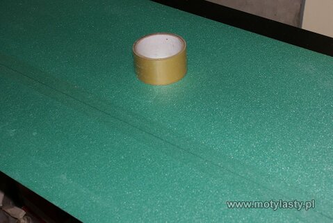 a raczej oklejenie do dookoła kawałkiem tektury. Pokrycie to zabezpiecza płat przed wpływem sił wywieranych przez gumę mocującą płat do kadłuba.