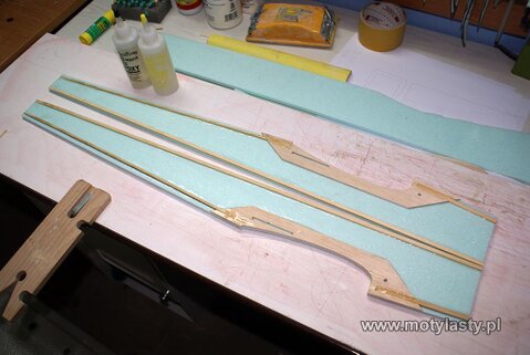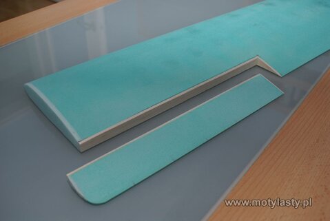 Z racji wielkości modelu, obszar lotek, jak i same lotki zostały usztywnione poprzez naklejenie pasów balsy, co ma usztywnić dodatkowo płat w tym miejscu.
