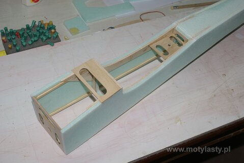 Jako że jest to model akrobacyjny wzmocniono maksymalnie miejsce łączenia kadłuba z płatem poprzez wklejenie poziomej wręgi tylnej, do której właśnie będzie mocowany płat.