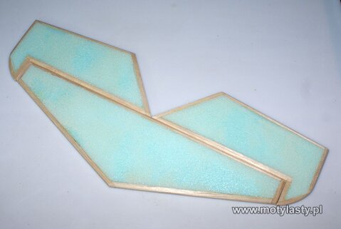 W przypadku modeli większych, które dodatkowo będą oklejane którąś z technik ( taśma pakowa, folia, papier na Wikol ) wzmacniamy usterzenie poprzez oklejenie dookoła wszystkich powierzchni stateczników i sterów.
